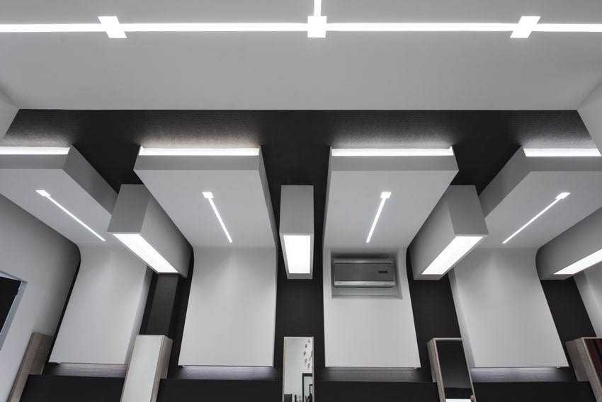 La progettazione si è dunque concentrata nel trovare soluzioni di finiture e colori che ben si sposassero con l'esistente e nell'ideazione di controsoffittature che coniugassero l'estetica ad una più funzionale distribuzione dell'illuminazione.