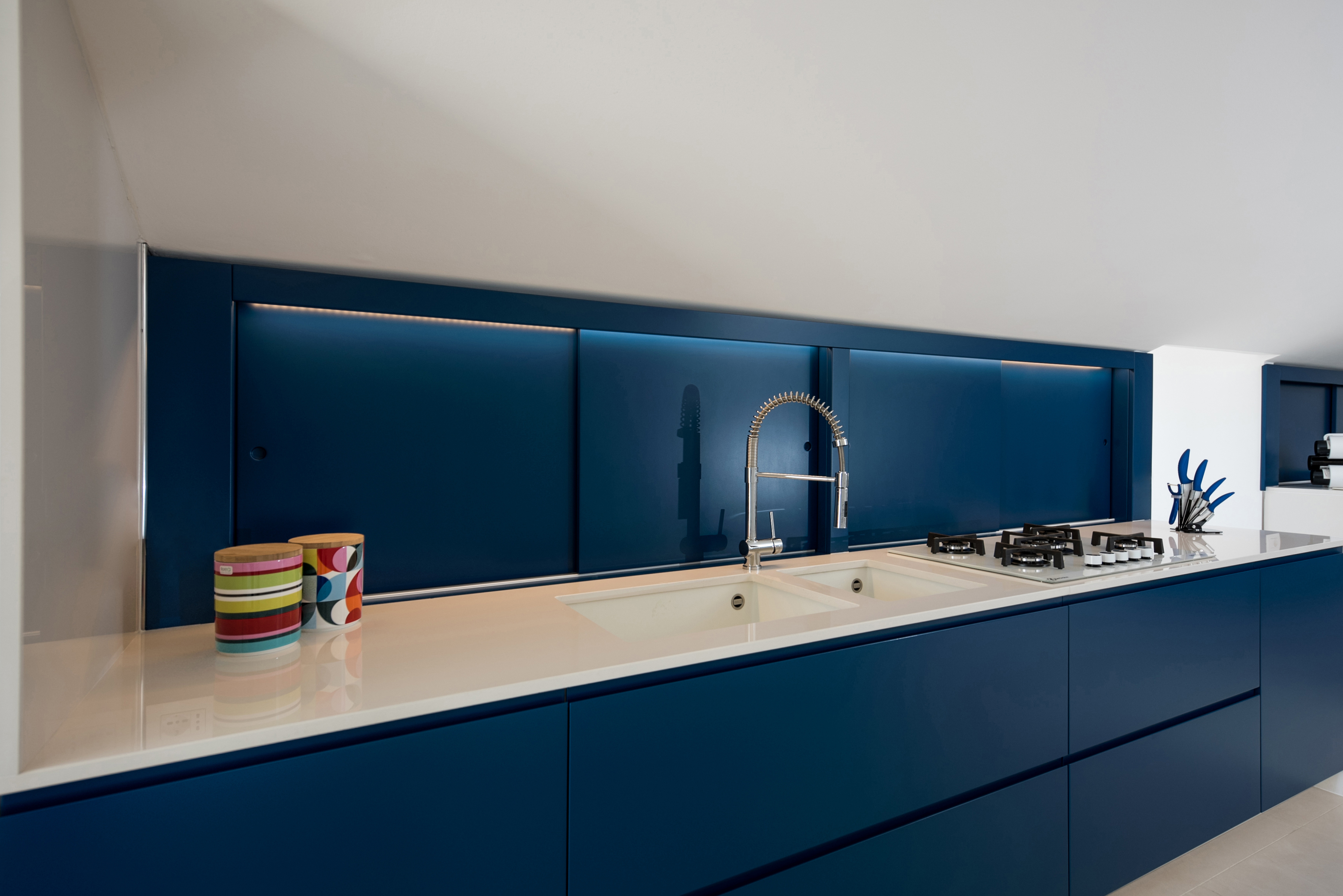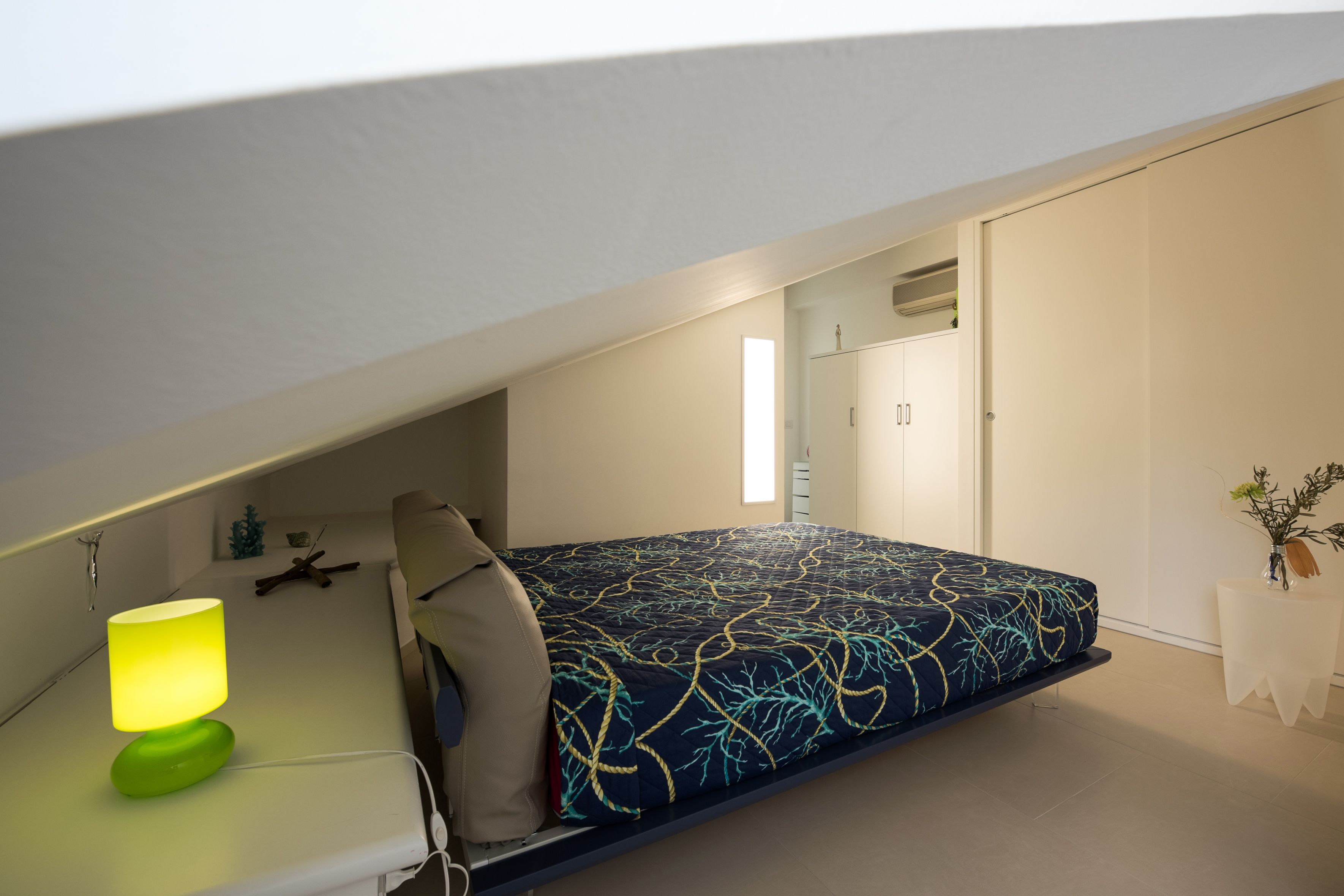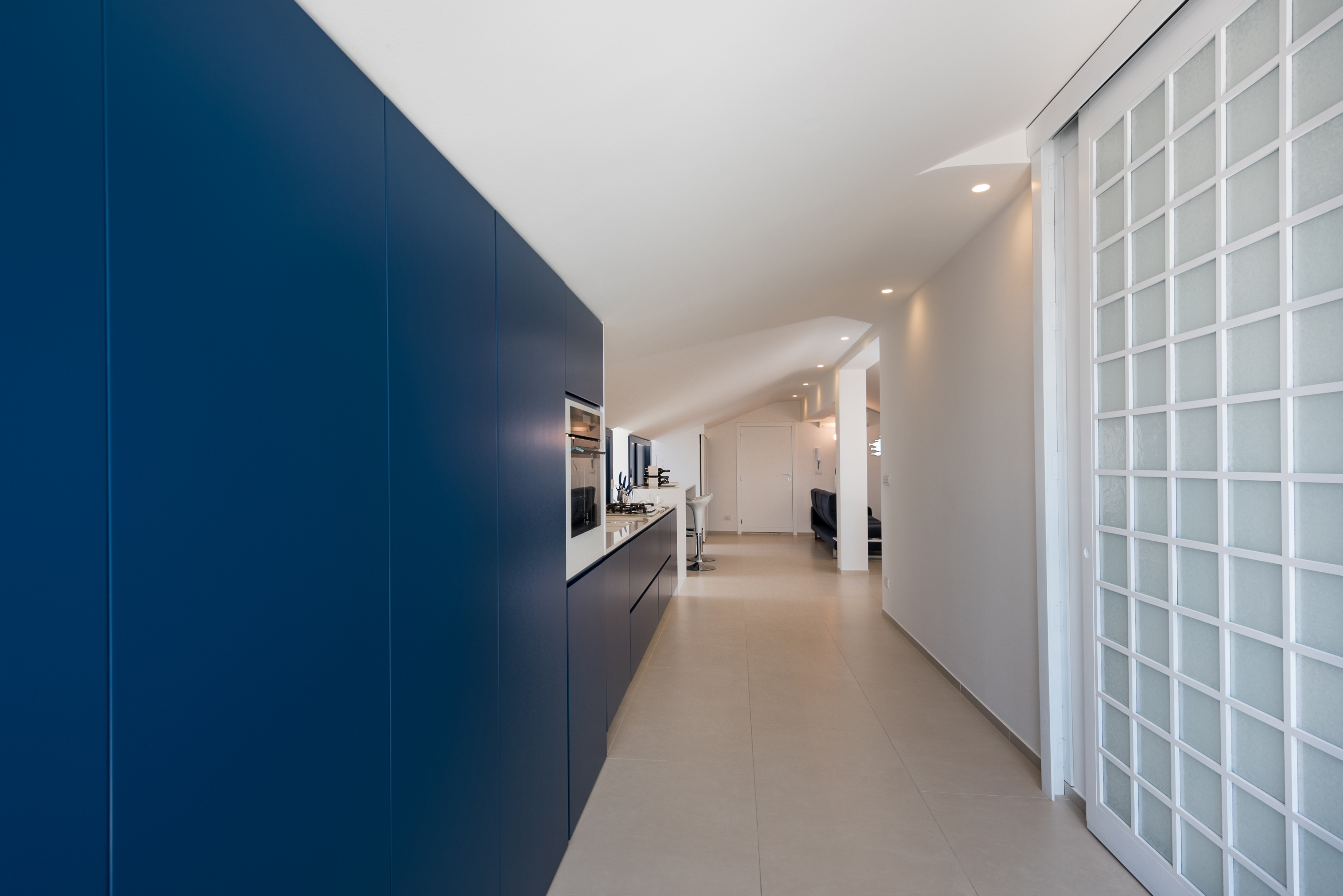 elemento che si sviluppa per tutta l’estensione della mansarda, si integra agli