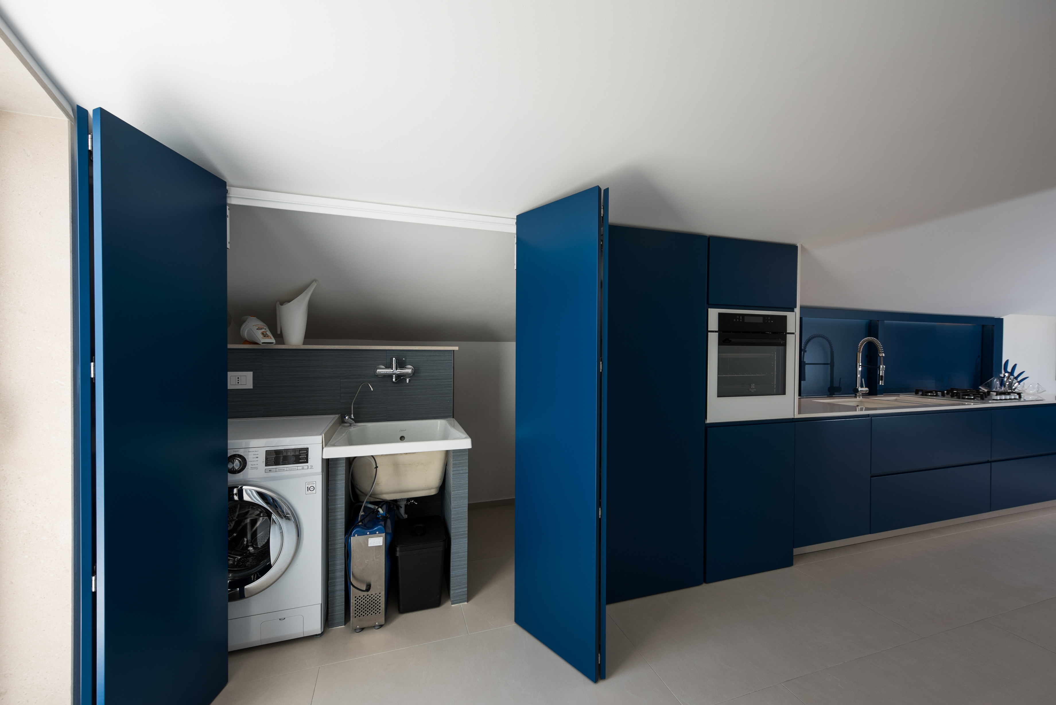 lavanderia, si richiude completamente, mitigando la sua imponente presenza e