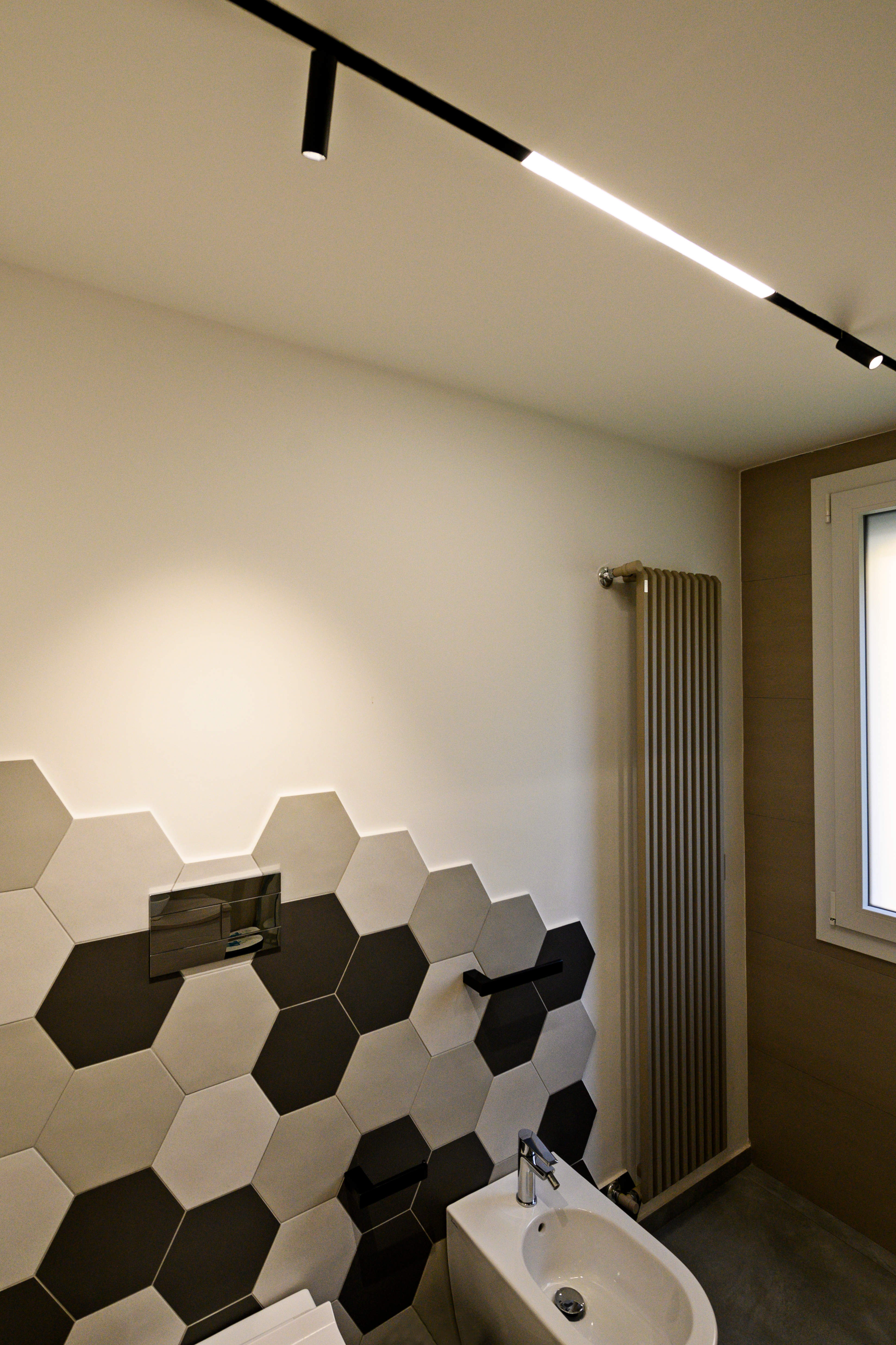 diverse tonalità di grigio, presenti in gran parte di muri, pavimenti, rivestimenti